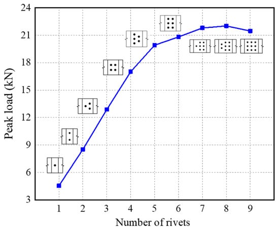 Number of rivets–peak load curve.