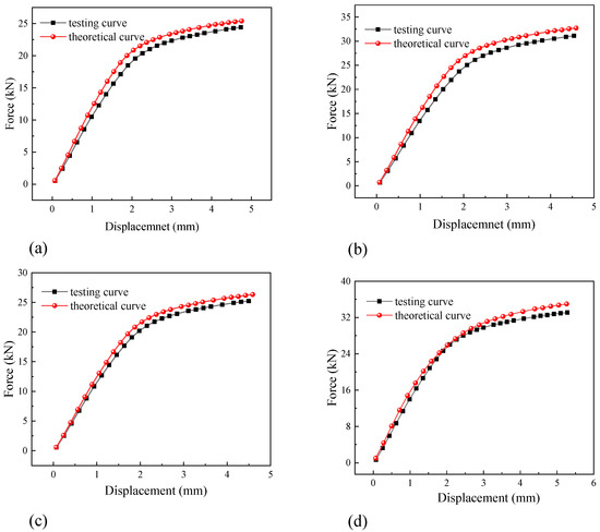 The simulation curves were obtained using the data in Table 3 and by building finite element models for different rivet arrangements. Theoretical values were also calculated, and they were compared with the curves calculated by the finite element model, as shown in Figure 23. The theoretical curves agree well with the curves produced by the finite element simulations, which indicates the accuracy of the mechanical model developed during this study.