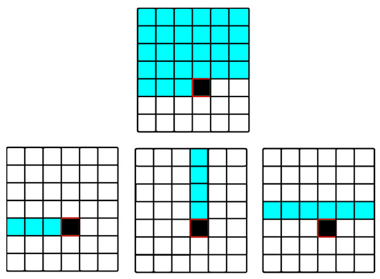 For the experiments, the compressed codes were obtained from the previously trained VQ-VAE model from the original jukebox code repository. It was a three-level hierarchical VQ-VAE, and its architecture is detailed in the original paper [11]. Audio was compressed to 128× of its input dimension on the top level, and to 32× and 8× on the middle and bottom levels, respectively. Since in this paper, our focus relies on reducing inference time rather than showing music diversity, we chose the training data to be much smaller than the one used in the original Jukebox proposal. The training data consisted of a compilation of songs by a single commercial music interpreter. This encompassed around 300 32-bit-resolution songs sampled at 44.1 KHz. It encoded the audio by taking 18, 6, and 1.5 s of raw audio during training from the top, middle, and bottom levels, respectively. For the sake of simplicity, we trained the top prior unconditionally, without lyrics or labels, and adopted almost the same architecture as in the 1-billion-parameter example, which encompassed the three-factored attention-sparse functions, whose patterns are shown in Figure 4 (further details can be seen in the Jukebox paper [11]). The teacher model consisted of 72 layers of sparse attention for all prior and up samplers. Two student models were trained; they had 24 layers and 18 layers, respectively. The models were trained using Equation (4) for 20 epochs, and then using Equation (3) for a further 50 epochs.