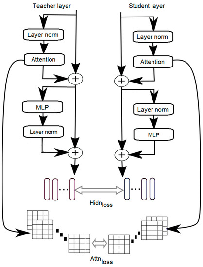 In addition, we applied attention-based distillation and hidden-state-based distillation, as in [13], to strength transfer the information between the teacher and student using learning intermediate structures: