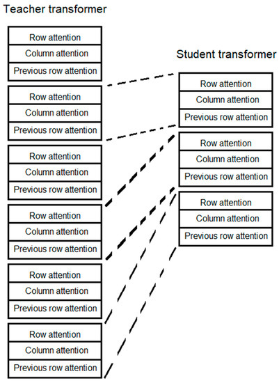 Layer correspondence based on attention pattern. Each attention pattern (row attention, column attention, and previous row attention) from the teacher model was consecutive.