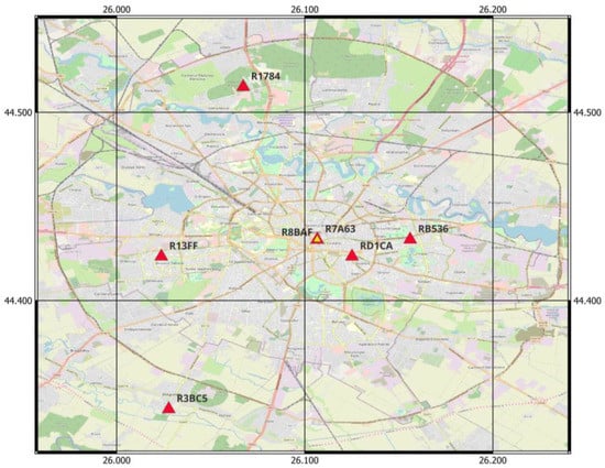 From the Raspberry Shake FDSN web services, the data is downloaded with Python notebooks from JupyterHub. The notebooks are based on the ObsPy Python module, which is a collection of open-source programs developed to provide a Python framework for the acquisition/processing and analysis of seismological data [25,26,27]. For amateurs, there is the possibility to view the data in the manufacturer’s apps on both internet-connected devices [28] and smartphones [29]. Earthquake citizen science networks can significantly contribute to mitigating seismic risk and improving citizens’ knowledge of seismology and earthquakes [30,31,32] in areas with intense seismic activity or that are affected by the seismic activity in the surrounding areas. As Bucharest is one of the most affected cities by earthquakes in Europe and has suffered much damage due to strong Vrancea intermediate-depth earthquakes, such a network, the Bucharest Raspberry Shake Seismic Network (BRSSN), was developed starting in June 2020 when 15 4D RSs were installed in five buildings [33] in Bucharest city to study their structural behavior during earthquakes. In the present study, we use the data from the seismometers listed in Table 1, which are installed in the building’s basement and/or ground floor. In the case of one building with two RSs (R7A63 and R8BAF, see Figure 3) installed in the basement and on the ground level, both seismometers were utilized. The BRSSN was upgraded in November 2020 with a 1D RS installed in the NIEP Seismolaboratory and a 4D RS installed in September 2022 at the Bucharest French School. These two seismometers are part of the Romanian Educational Seismic Network (ROEDUSEIS [22]), which comprises 24 Raspberry Shake seismometers integrated into the global citizen science Raspberry Shake network. Even though all these seismometers (Figure 3) are under the care of the National Institute for Earth Physics in Romania, they are integrated into the global citizen science Raspberry Shake network [4].