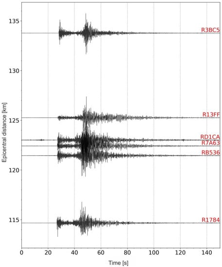 Earthquakes of a magnitude around 4 are small to moderate earthquakes and do not cause damage to the built environment. Still, they can shake the population by alerting them and taking them out of their comfort zone. Earthquakes of this size, however, are poorly recorded by RS seismometers. Things are different for larger earthquakes, such as the 5.3 magnitude earthquake of 3 November 2022, the largest earthquake during the period analyzed. Six seismometers connected to the Raspberry Shake Citizen Science network in Bucharest were online and recorded the earthquake at that time. Figure 5 shows a distribution of waveforms as a function of epicentral distance.