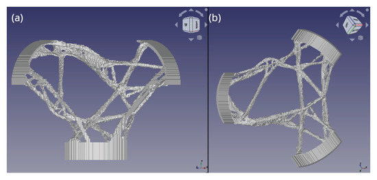 (a,b) Two different views of the topology optimization output—the input for the features recognition system.