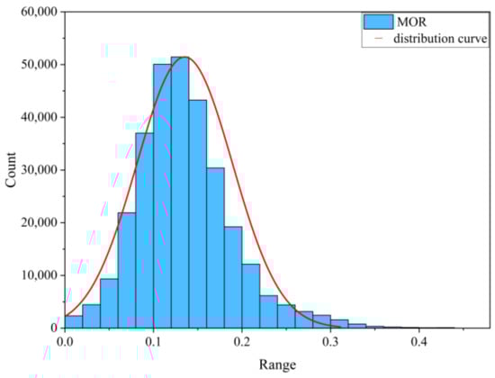 Figure 6 shows that the overall data presented a normal distribution, the risk measurement for most drivers’ driving behavior was between 0.1 and 0.3, and the remaining samples showed a lower frequency. For the MOR data, the lower their value, the more conservative a driver’s driving behavior. Conversely, the higher their value, the more aggressive a driver’s driving behavior.