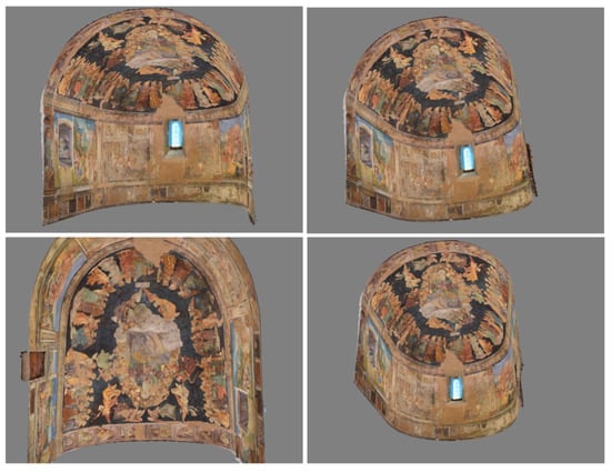 Moreover, Figure 1 shows additional views of the 3D model. The model can be used for mapping the state of conservation, the execution techniques, the eventual restoration areas and for georeferencing the analysis performed in the various part of the painting on the occasion of the development of the AIAr Tornimparte project.