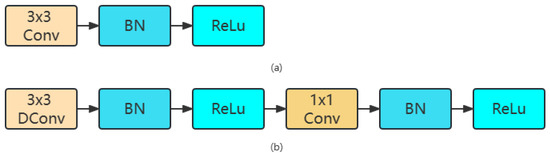 Depthwise separable convolution effectively decomposes the traditional convolution by separating the spatial filtering from the feature generation mechanism and reducing the amount of calculation by eight to nine times, compared with the traditional convolution [20]. The structure of traditional convolution (a) and depthwise separable convolution is shown in the Figure 2.