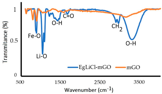 FT-IR spectra of mGO and EgLiCl-mGO.