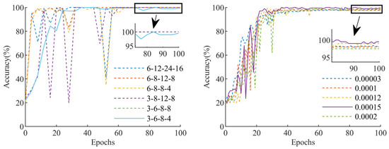 Figure 13 illustrates the impact of different network structures and learning rates on model accuracy.