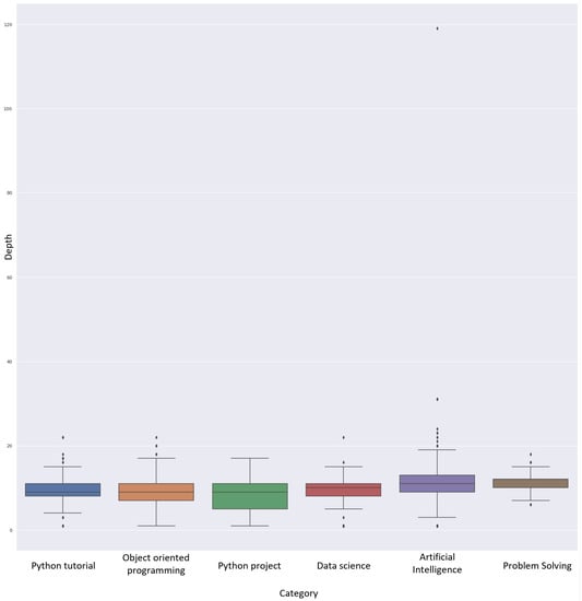 These categories cover three levels of programming education, from introductory programming (Python tutorial, Problem-solving) to intermediate programming (Python project, Object-oriented programming) and narrow domain programming (Artificial Intelligence, Data Science).