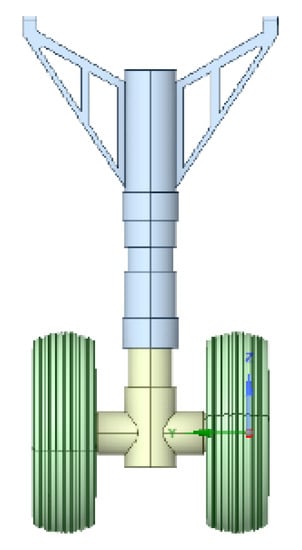 The related research in this paper does not involve the landing gear. The contact inside the buffer system is set to bind for the convenience of calculation. It is also necessary to establish a connection between the tires and the hub to ensure that the tires can rotate forward around the landing gear bearings.
