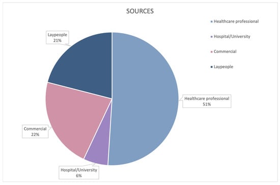 Of the 63 videos analyzed, 32 were uploaded by healthcare professionals (51%), 4 by hospitals or universities (6%), 14 by commercial companies (22%) and 13 by laypeople (21%) (Figure 3).