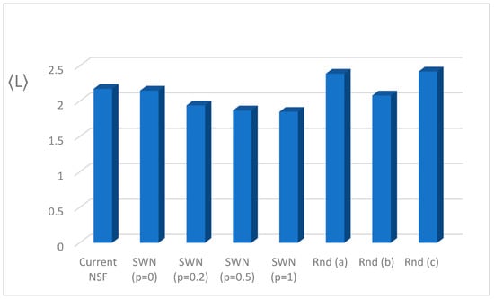 - We improved the NSFNet path length. Our results, as shall be illustrated in a subsequent section, demonstrated that a reduction of 15% in the NSF network path length can be achieved with a small-world network design with p = 1.