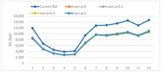 In this work, we have assessed the network power consumption of the redesign NSF topology for different average node’s mean degrees (k = 4 and 6) to evaluate its impact on energy conservation of the implemented SWN described in Section 4.