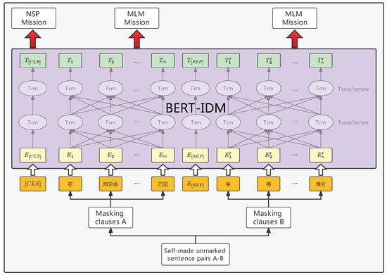 Diagram of pretraining process of BERT-IDM.