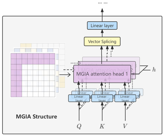 The attention mechanism of MGIA with three such pre-defined templates can be set up in such a way as to allocate computational resources to the key parts in a very efficient way, avoiding distracting attention while combining global and local information in a multi-granular form, taking into account long-range dependency modeling, and reducing the complexity of the attention computation process. The general structure of the MGIA mechanism is shown in Figure 6.