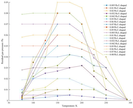 Directly measuring the interlayer pressure is the best way to monitor MLI vacuums. Many researchers have conducted experimental tests of the interlayer pressure. Price [] used thermocouple gauges monitor the MLI interlayer vacuum in a liquid hydrogen container. It was found that the MLI interlayer vacuum did not reach the desired level. However, the MLI vacuum was improved when pretreatment measures such as perforation were used. Bapat [] placed thermocouples between interlayers to measure the vacuum of MLIs in a liquid nitrogen calorimeter. The results proved that the combination of aluminized Mylar and glass fibers had good insulating properties and found that the interlayer pressure might be 10–50-times higher than the vacuum chamber pressure. It was also shown that the interlayer pressure was higher than the pressure of the vacuum chamber, and the effect of the residual gas conduction cannot be neglected in theoretical calculations. Zhou [] placed the capillary tubes in the MLI interlayer, and external micro-pressure gauges were used to measure the MLI vacuum for dynamic and static vacuuming processes. The results showed that dynamic vacuum and baking had a beneficial effect on the MLI vacuum, but the measuring error of the capillary tube was significant, and the interlayer pressure distribution results were similar to a “” shape. The interlayer pressure distribution was closer to an “L” shape based on the static evacuation.