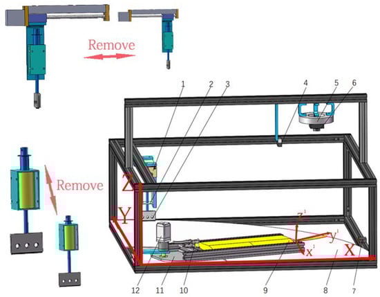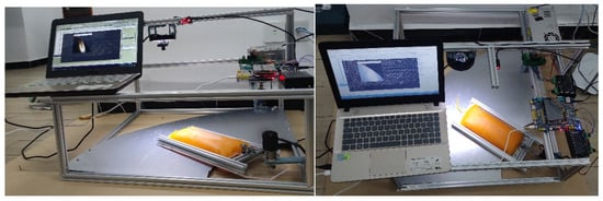 In the system, errors appeared superimposed. To achieve the system’s functionality accurately, both the accuracy of the visual inspection and that of the individual actuators needed to be met [,,,]. Consequently, the accuracy of the individual actuators was verified.