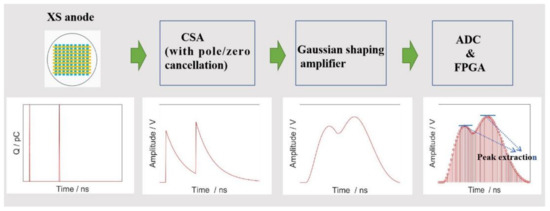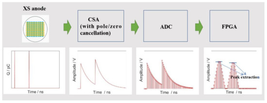 - Tremsin, A.S.; Siegmund, O.; Vallerga, J.V.; Raffanti, R.; Weiss, S.; Michalet, X. High speed multichannel charge sensitive data acquisition system with self-triggered event timing. IEEE Trans. Nucl. Sci. 2009, 56, 1148–1152. [Google Scholar] [CrossRef]