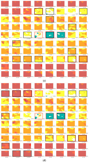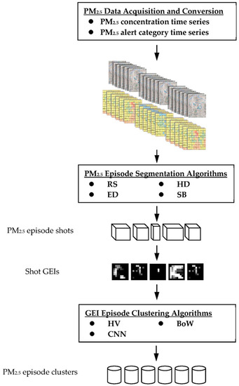 - Histogram Difference (HD). Instead of reserving the raster sequence of grid values, the HD method constructs a histogram by counting the number of grids having each level of the 10 alert categories. The 10 occurrence numbers on the histogram are used as the feature vector to calculate the difference between different frames within a time window. As compared to the RS method, the HD method is less sensitive to rotation and translation of the same pollution patterns and is more likely to extract complete shots of various episodes.