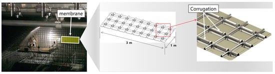 This study shifts the focus from the prevalent application of laser welding with robots in automobile manufacturing to the welding of LNG vessel cargo holds. The LNG cargo tank, a significant compartment found in LNG carriers, typically measures over 20 m in height, width, and depth, and may exceed 30 m in depth for specific vessels as shown in Figure 1. The inner surface of the LNG cargo tank is constructed through the welding of membrane modules, as depicted in Figure 2. The size and shape of the membranes vary based on their attachment location and specifications, and corrugations are incorporated into the membrane to accommodate temperature-induced volume fluctuations for safety during transport. Approximately 2000 membranes, each with dimensions of 3000 mm by 1000 mm, contribute to the construction of a single LNG cargo tank.