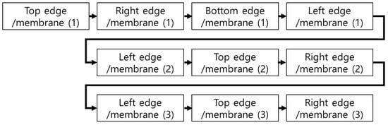 In the case illustrated in Figure 11, as previously explained, when the robot is positioned at predefined locations, the welding sequence for edges, as determined in Figure 13, is established. The robot’s motion path is generated using this Edge information. Predefined robot actions in the Edge information of the MDF are based on path points for the ‘(a) teaching membrane in Figure 17, where a human operator initially performed the welding task. In other words, when the robot welds the teaching membrane, it follows the Edge information in the MDF, replicating the actions taught.