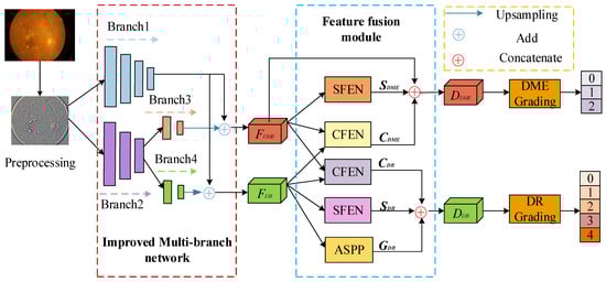 Xing, X.; Mao, S.; Yan, M.; Yu, H.; Yuan, D.; Zhu, C.; Zhang, C.; Zhou, J.; Xu, T. A Multi-Task Learning and Multi-Branch Network for DR and DME Joint Grading. Appl. Sci. 2024, 14, 138. https://doi.org/10.3390/app14010138