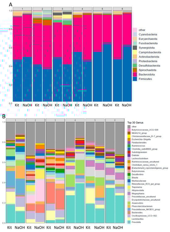 3.4. Optimized Extraction Use for Fecal Microbiome
