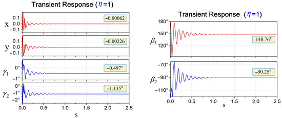 Transient response and steady-state equilibrium values of the system with η = 1.