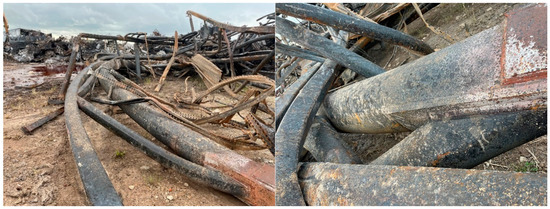 Figure 1. The steel trusses were composed of cold-formed square hollow sections. The upper profile of the truss was originally designed as a CFSHS 300 × 300 × 8 section. The damaged structure offered an unexpected sight. In