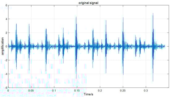 Existing experiments indicate that the amplitude range of random pulse signals of industrial motor bearings is typically about seven times greater than that of signals in the normal state [,]. To account for the frequency of oil pump motor bearing faults, each signal fragment contains five additional sampling points for random pulse signal collection.