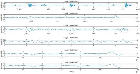 (1) Perform wavelet decomposition: First, select a suitable wavelet basis function according to the application requirements and signal characteristics. Common wavelet basis functions include Daubechies, Haar, symlets, etc. Second, the signal to be denoised is represented as a discrete sequence, x(n), n = 0, 1,..., N − 1. Then, at each scale, the selected wavelet basis function is used to perform a convolution operation with the signal to obtain the Approximation Coefficients and Detail Coefficients.