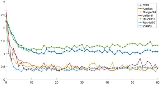With the development of artificial intelligence algorithms, deep learning algorithms can realize the extraction of equipment fault characteristics from monitoring data and diagnose their deep faults, and they have been widely used in the field of machinery fault diagnosis. Therefore, in the bearing fault diagnosis, many scholars at home and abroad propose a variety of deep learning algorithms to identify and classify the bearing faults. Feng et al. [] proposed a multi-level denoising technique based on Improved Singular Value Decomposition (ISVD) and Intrinsic Time Scale Decomposition (ITD) combined with an improved deep residual network (ResNet) for rolling bearing fault diagnosis. The experimental results show that the proposed method can realize more accurate fault diagnosis of rolling bearings in high noise environment compared with other methods. Guoqian Jiang et al. [] proposed a new interpretable deep learning model called Multi Wavelet Kernel Convolutional Neural Network (MWKCNN) for fault diagnosis. Diwang Ruan et al. [] detailed the physical characteristics of bearing acceleration signals to guide the design of CNN. The results show that physically guided convolutional neural network (PGCNN) with rectangular input shape and rectangular convolutional kernel works better than baseline convolutional neural network with higher accuracy and less uncertainty. Manu Krishnan et al. [] proposed a new method for modeling dynamic systems by combining wavelets with input-output dynamic modal decomposition (ioDMD). The experimental results show that the algorithm still performs well under the influence of noise. Xiaoyu et al. [] proposed a Residual Network (ResNet)-based deep migration diagnostic model for bearing failures by combining Wavelet Packet Transform (WPT) and Multicore Maximum Mean Difference (MK-MMD). And the comparative experiments under different working loads and speeds were carried out on two test benches. The results show that the proposed method has good fault diagnosis and noise prevention ability and is suitable for the task of working condition transition. Xudong Li et al. [] optimize and improve the Neural Architecture Search (NAS) according to the field of automated machine learning, and apply it to the field of fault diagnosis. Tian Zhang et al. [] proposed a slope and threshold with tanh function adaptive activation function (STAC-tanh), which improves the problem of the activation function compressing part of the fault information in the traditional neural network. A convolutional neural network is a typical deep learning method that has been widely used for image recognition. Chunran Huo et al. [] proposed an improved adaptive dimension transformed convolutional neural network (ADC-CNN) to improve the accuracy by 9% for the problem for which 1D-CNN could not fully utilize the feature extraction. Among the classical models of convolutional neural networks include LeNet, AlexNet, GoogleNet, VGG, ResNet, DRSN, and so on.