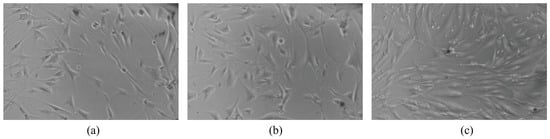 Human dermal fibroblasts: (a) 0 h; (b) 24 h; (c) 48 h.