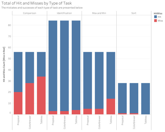 The color perception test was carried out with a group of 12 people who accepted the invitation and completed the FM test in the physical and digital environment. To select this group of users, the following requirements were established: to be over 18 (eighteen) years old, to have basic knowledge of reading data charts, specifically bar charts, and not to have problems differentiating colors (no form of color blindness).