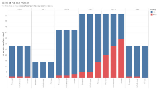 In Figure 9, we can see the representation of the errors obtained in each set of bars, and the totality of the charts may be an overwhelming overview, but the main focus is on where the error is greatest in the set of bars, where the orange line is greater than the blue line. This presents a set of colors with many errors, which we can prune to select an appropriate palette.