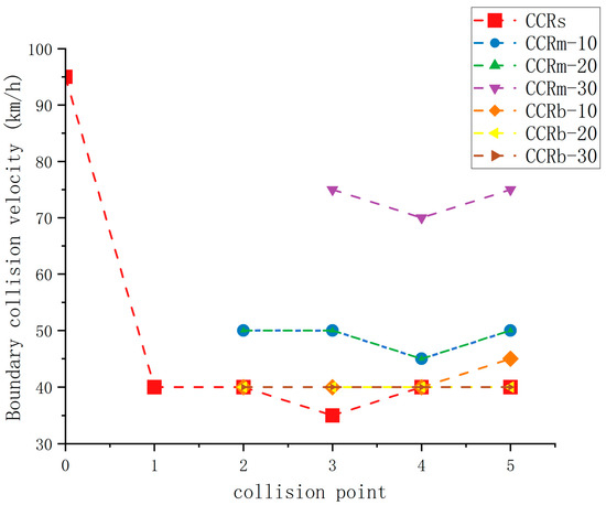 A Scene-CCRs (In scene A, when the front vehicle is stationary, the boundary collision velocity is measured at the collision point respectively).
