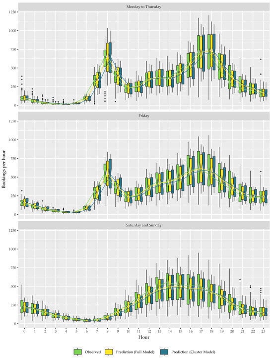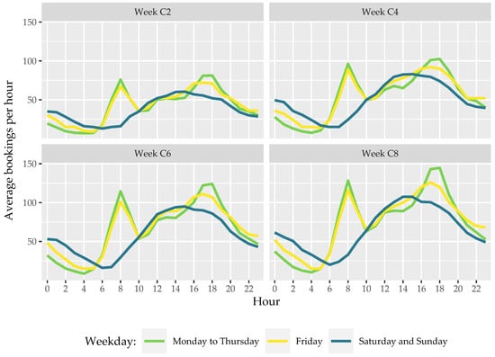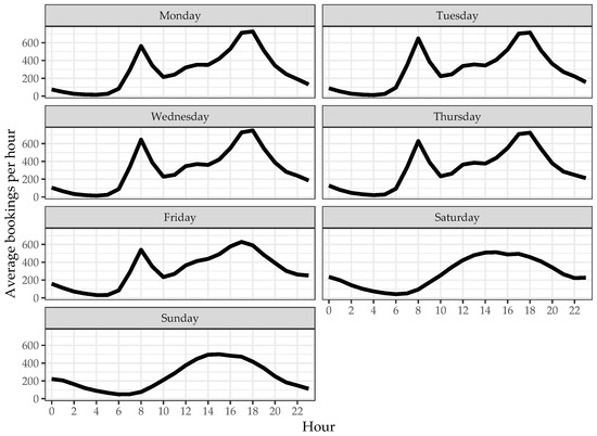 On a larger scale, O’Brien et al. [42] analyzed 38 global bike sharing systems and classified them based on temporal characteristics and associated user types. A large proportion of the considered systems also showed two weekday peaks (morning and afternoon) and a broad afternoon peak at weekends, with predicted user types being commuters and weekend leisure users. However, O’Brien et al. also identified further systems that, for example, are primarily used on weekends (leisure users) or have more than two commuter peaks per day (commuters with some utility users) [42]. The temporal characteristics of an even larger number of 322 global bike sharing schemes can also be obtained from Todd et al. [34].