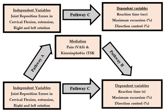 37]. The current study reveals the mediating role of pain and kinesiophobia in shaping the relationship between cervical proprioceptive reposition errors and limits-of-stability variables. Pain, a hallmark of CS, emerges as a potential influencer of both proprioceptive accuracy and stability [