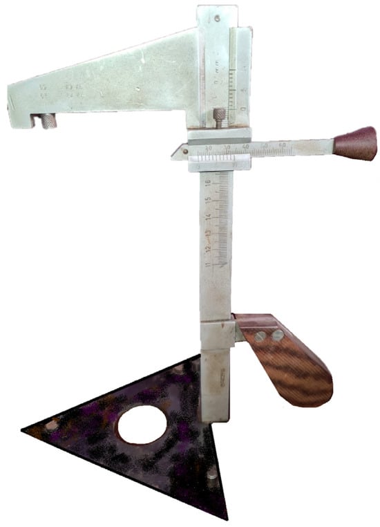 The investigation into the progression of rail wear involved conducting measurements on sharp curved tracks, specifically focusing on the outer rail of rail type 65 with the Romanian Vignole profile. The rail wear assessment utilized a dedicated rail wear measuring device, as depicted in Figure 2. This device is positioned on the rail base and employs contact needles to measure both vertical and lateral rail wear. The obtained values from measurements on the rail head and gauge corner are documented on a rail wear measuring form. Rail type 65 is characterized by a weight of 65 kg/m, a height of 17.2 cm, and additional properties that are detailed in Table 1.