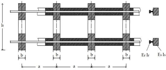 Sleepers embedded in ballasted tracks contribute significantly to track stiffness. Pre-stressed concrete sleepers are preferred for their durability, while timber sleepers are chosen for their flexibility [,,,,]. The bending stiffness is a crucial parameter for effective load distribution [].