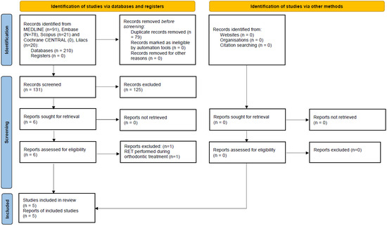 The overall risk of bias assessment in all included studies was high. Bias can be defined as a deviation from the truth and may lead to a false estimation of the intervention effect. As stated, all included studies had a high risk of bias in the domain ‘confounders’. A confounder, such as the protocols performed for RET and orthodontic treatment, is a variable that predicts the outcome of interest. Therefore, in the presence of confounding, the association between the intervention and outcome differs from its causal effect [29]. Similarly, none of the outcome assessors were blinded to the intervention. Blinding of the outcome assessors aims to prevent systematic differences in measurements [29], and thus the lack of it may contribute to bias. Finally, potential biases are likely to be greater for non-randomized studies than for randomized trials [29]; therefore, the results of this systematic review, based on case reports, should be taken with caution.