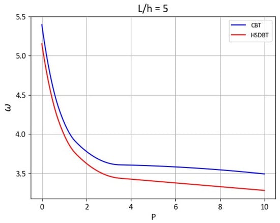 Non-dimensional frequency comparison obtained from CBT and HSDBT for L/h = 5.