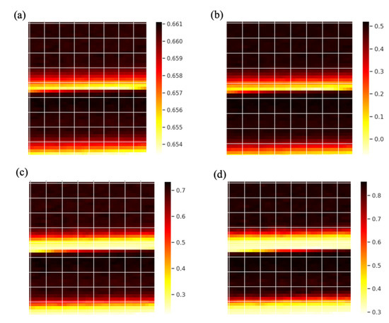 The thermodynamic diagram of the attention mechanism in the training process of the prediction task is shown in Figure 9. It represented the thermodynamic diagram of attention after training 10, 20, 50, and 100 epochs, respectively. From Figure 9, when the number of rounds increases, the attention has different results.
