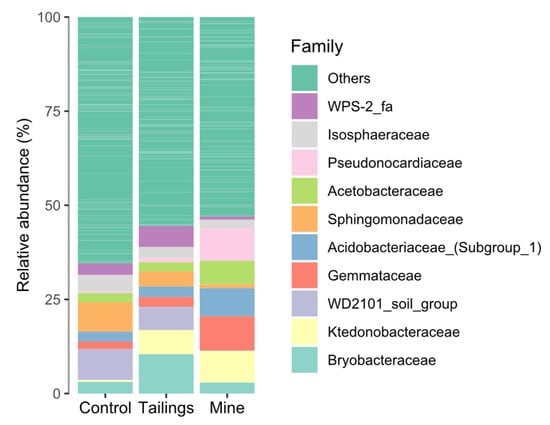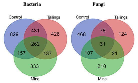 - Mendez, M.O.; Neilson, J.W.; Maier, R.M. Characterization of a Bacterial Community in an Abandoned Semiarid Lead-Zinc Mine Tailing Site. Appl. Environ. Microbiol. 2008, 74, 3899–3907. [Google Scholar] [CrossRef] [PubMed]