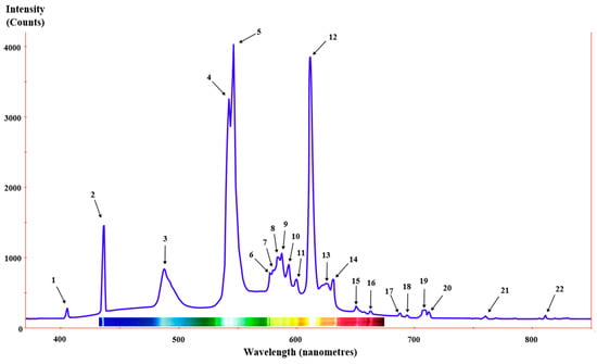 Fluorescent light bulbs have discrete emission spectrum with main peaks at 546 nm and 611 nm (Figure 1).