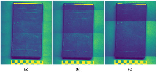 When creating reconstructed images in thermography and hyperspectral inspections, the motion of the sample and the frame rate of the camera are synchronized. In this way, it is relatively easy to extract the desired area from each frame of the recorded sequence, as described in [23]. In industry, however, it is rarely possible to match the movement speed of the object to the frame rate of a camera, as this would result in fewer objects being produced per hour. Cameras, on the other hand, often have a fixed frame rate, making it impossible to adjust the speed at which an object moves.