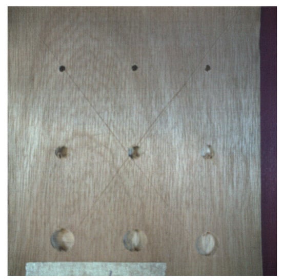 RGB image of the inspected bottom wooden sample, so the defects are visible. The dimensions are the following: 160 × 100 × 5.8 mm.
