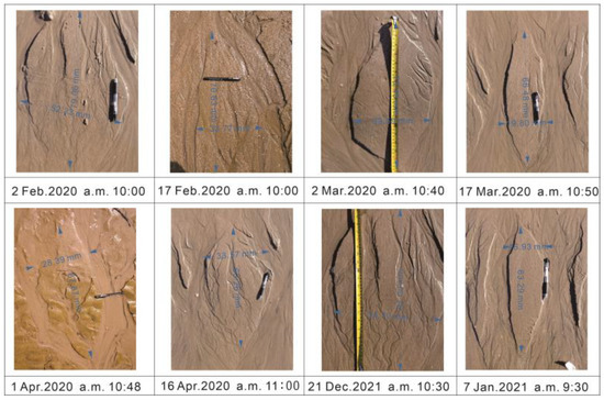 Scale measurement of the sand body on the beach shore of the braided river under the action of different tide times.