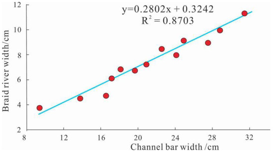 Combined with the sedimentary characteristics and the width of braided river and channel bar, the correlation between the width of the river sand body and the width of the channel bar is relatively good. Figure 7 shows a positive linear relationship, with a decision coefficient of 0.9598. It means that the larger the development scale of the channel bar, the wider the braided river.